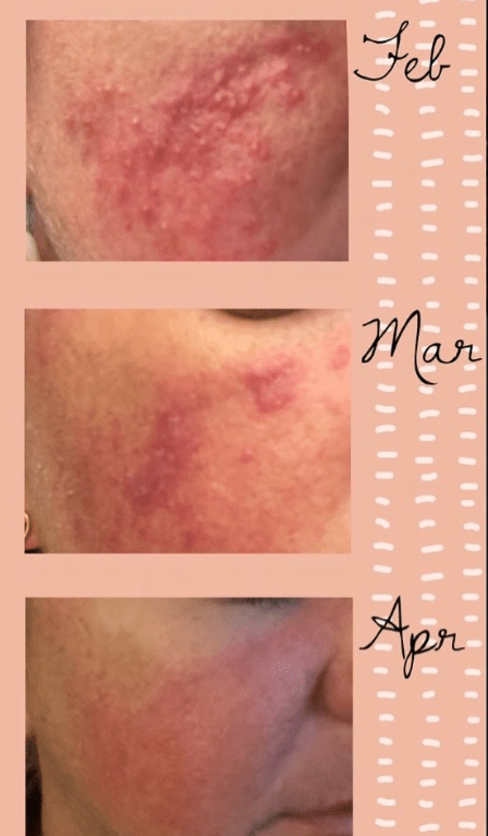 “I’ll forever be grateful for meeting you that night. You’ve been a Godsend who really helped me to see and understand my rosacea. You’ve changed my life. I’m no longer on any medication, not even a pill. I’m still continuing everyday to heal my body and gut naturally. I don’t use chemicals, and even do this with my kids now. So YES I think you should totally run with your idea cause you’re AMAZING and have helped me so so much. My skin looks amazing now and that’s thanks to you xxx”