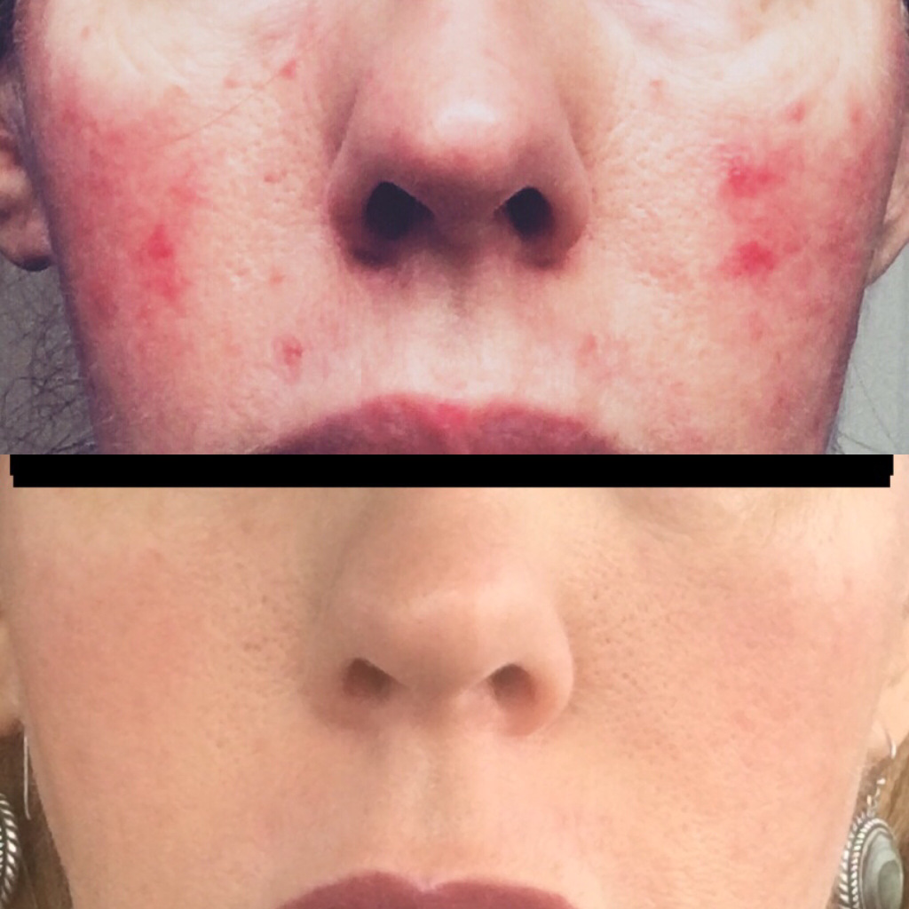 “I actually went to the dermatologist today and they loved how good my face is looking. They had 3 doctors and estheticians in there looking at it!” (She had stopped all meds, and hadn’t been to the dermatologist since she started my suggestions. I’m sure they were all patting themselves on the back…)