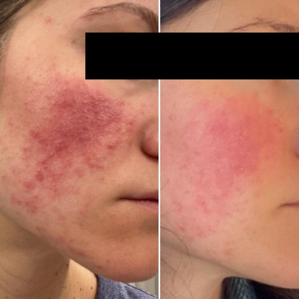 Marissa was also using cortisone cream on her face which made her skin much worse. She stopped all topical medications and began using a sulfur soap, began a clean eating protocol and switched all her skincare to plant based products without parabens, petrochemicals or fragrance.